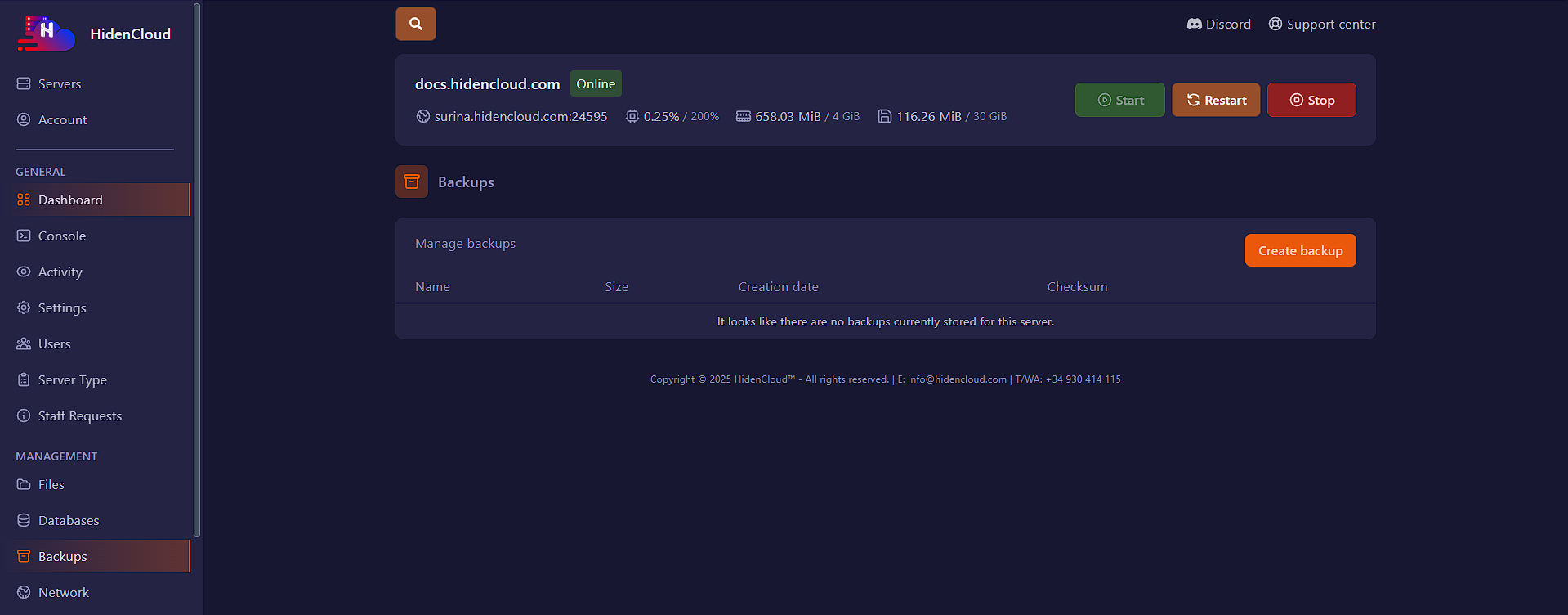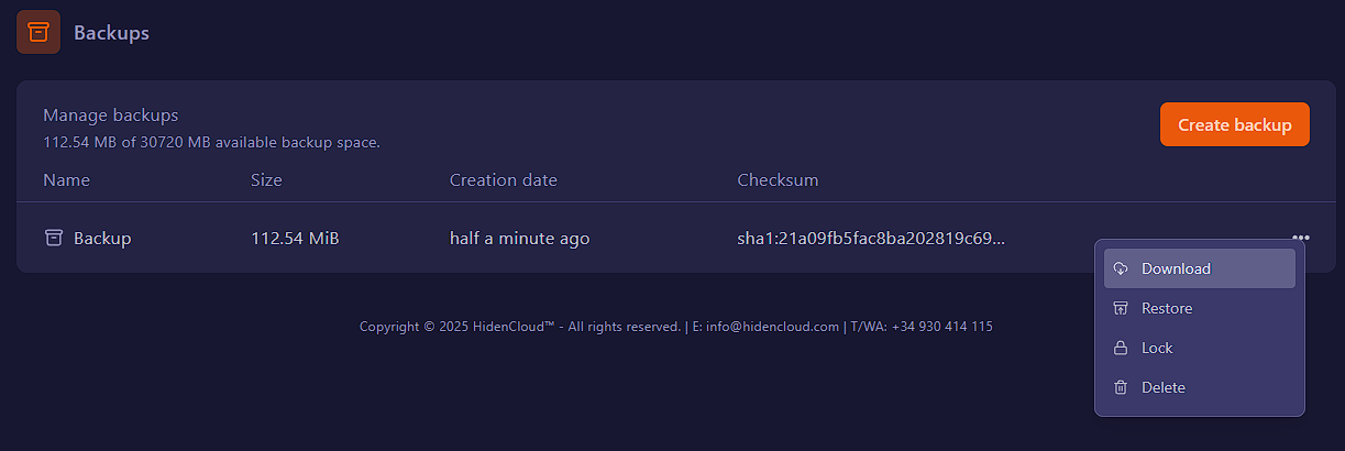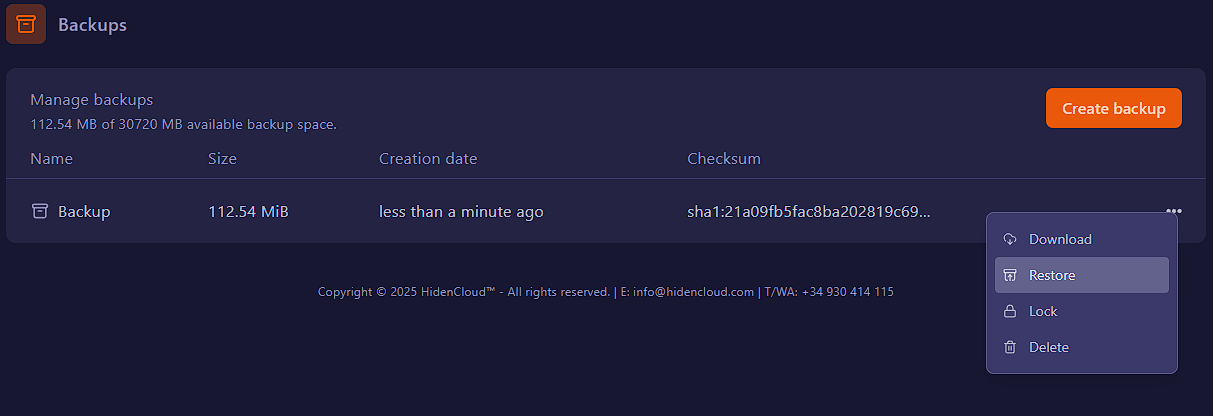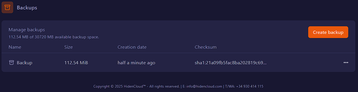 Si el servidor se encuentra encendido durante la creación de un backup, este se parará hasta la finalización del proceso.
