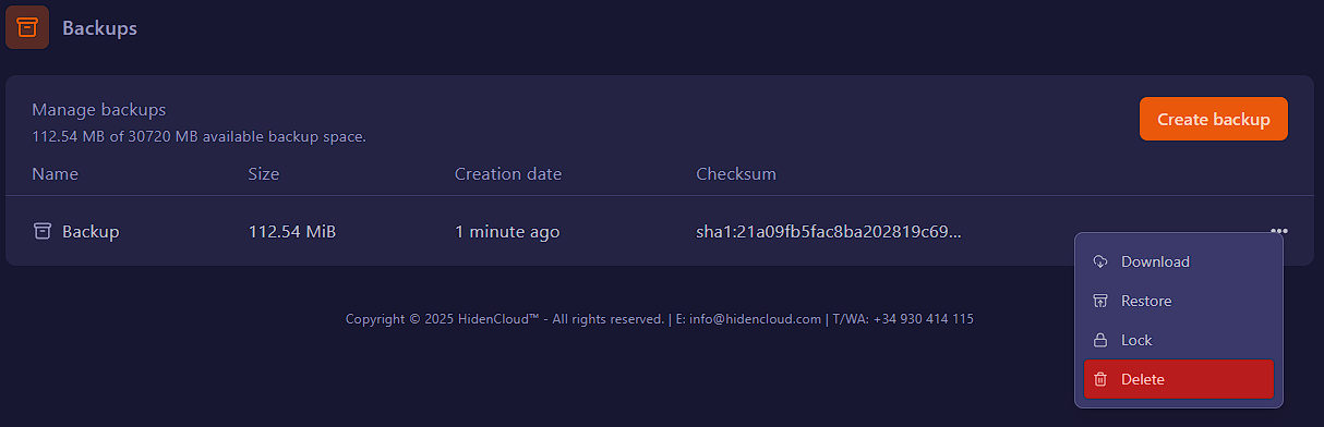 ## <mark style="color:blue;">Eliminar una copia de seguridad</mark>