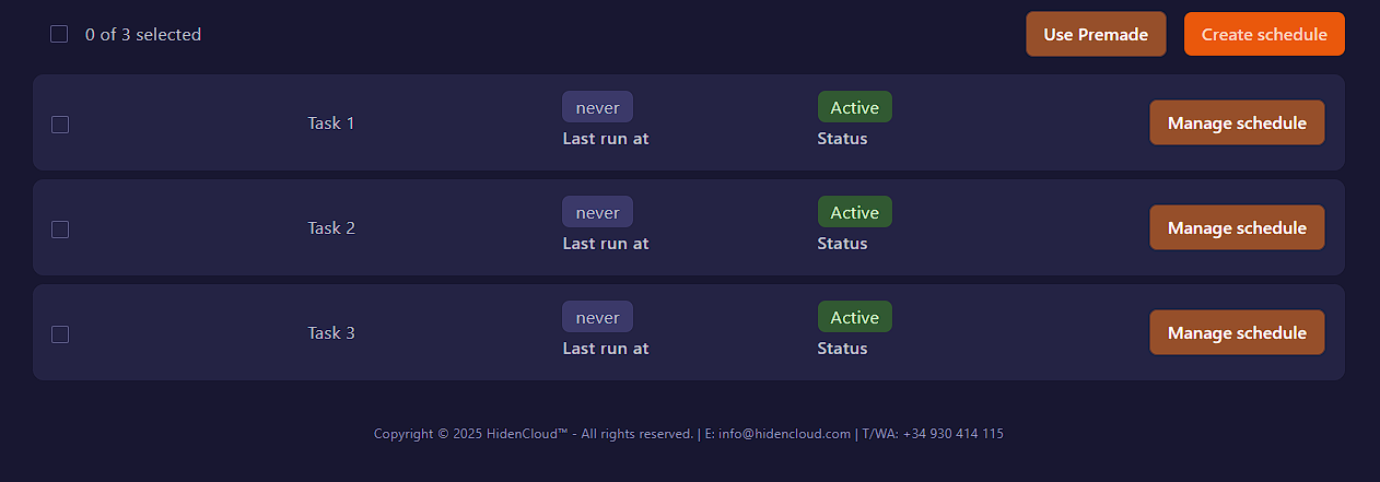 1. **Accede al Panel de HidenCloud**: Inicia sesión en tu cuenta y selecciona el proyecto o servidor donde deseas configurar la tarea.