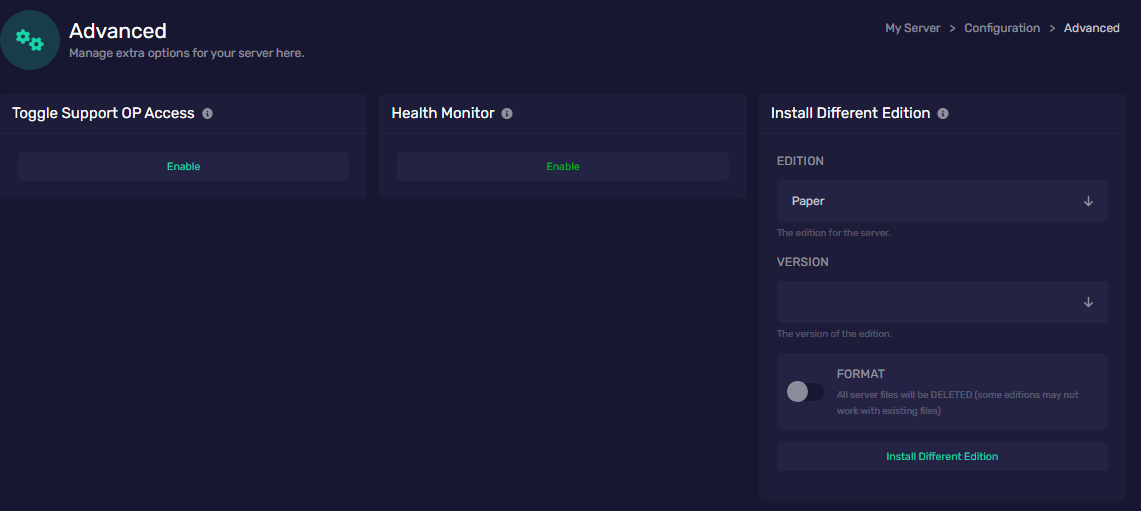 Enabling "Toggle Support OP" will grant specific administrative privileges to support staff, allowing them to access and assist you with your server-related queries and issues. This feature is designed to streamline support processes and ensure a smoother and more efficient resolution of any server-related concerns. However, it's essential to exercise caution and only grant access to trusted support personnel to maintain the security and integrity of your server. By following these steps, you can seamlessly enable "Toggle Support OP" and receive the help you need to optimize your server's performance.